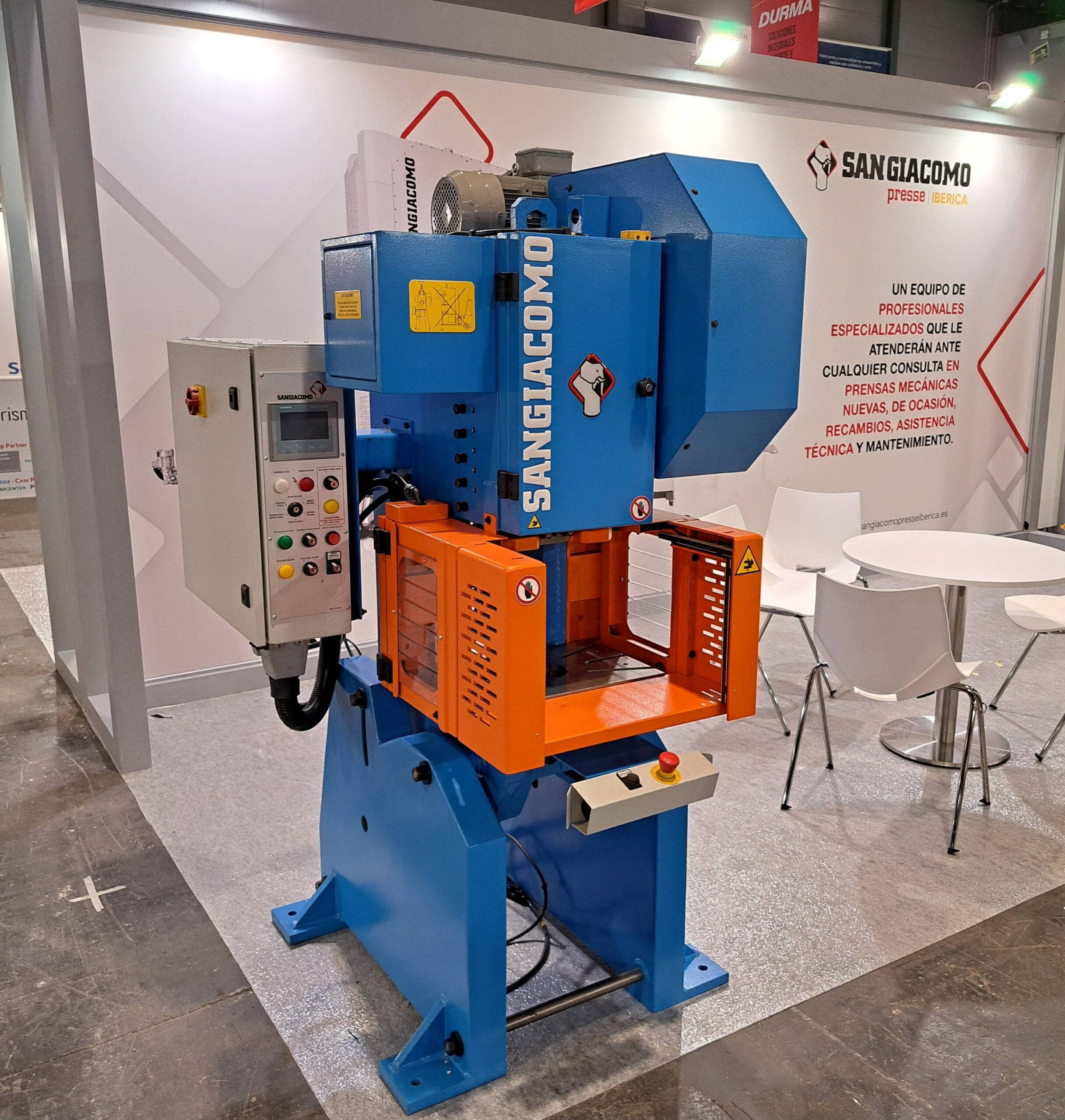 Instalación prensa Sangiacomo cuello de cisne de 50 toneladas. Con inclinación solicitada para cumplir con las necesidades del cliente en su producción. Para su producción,